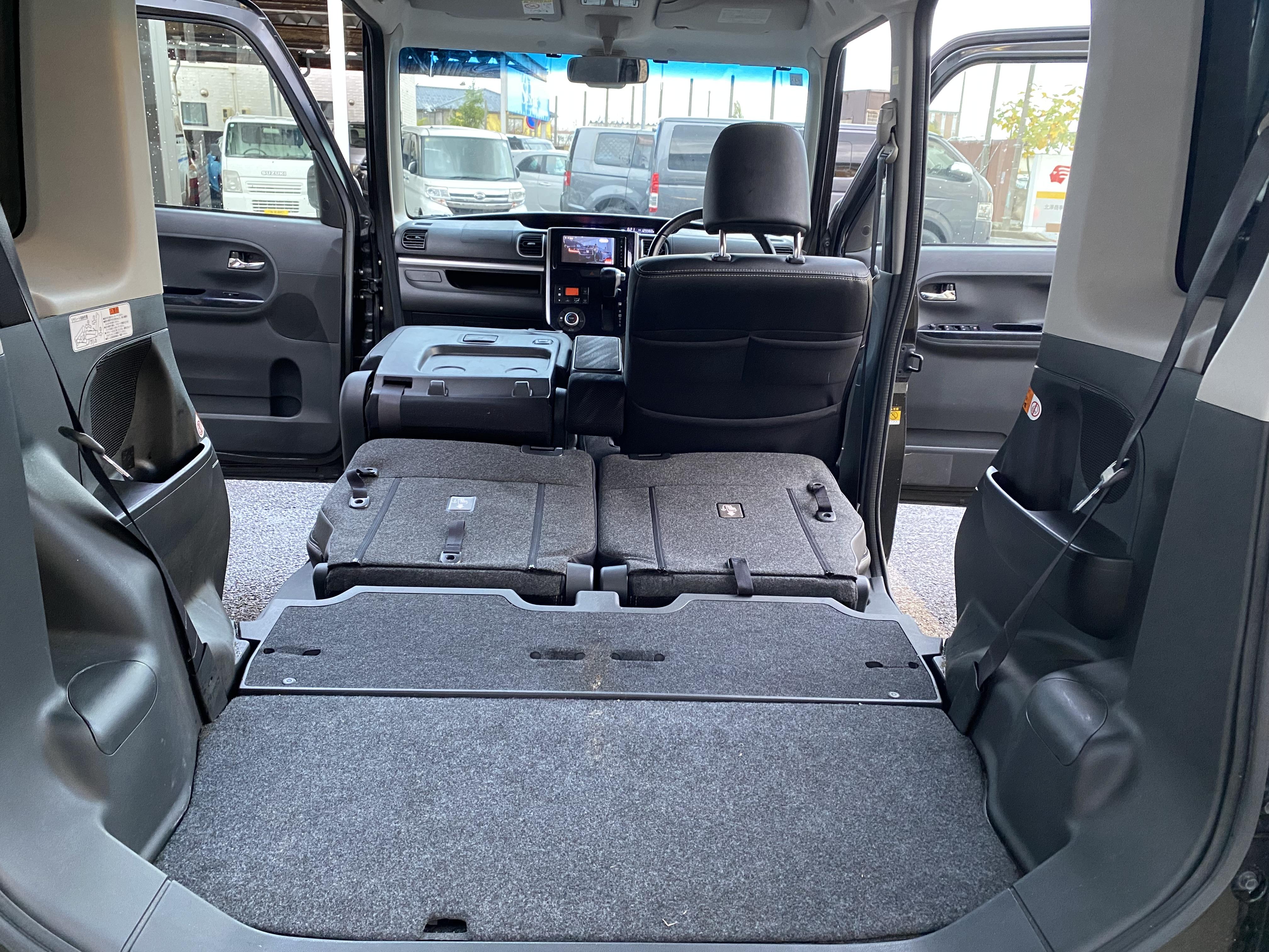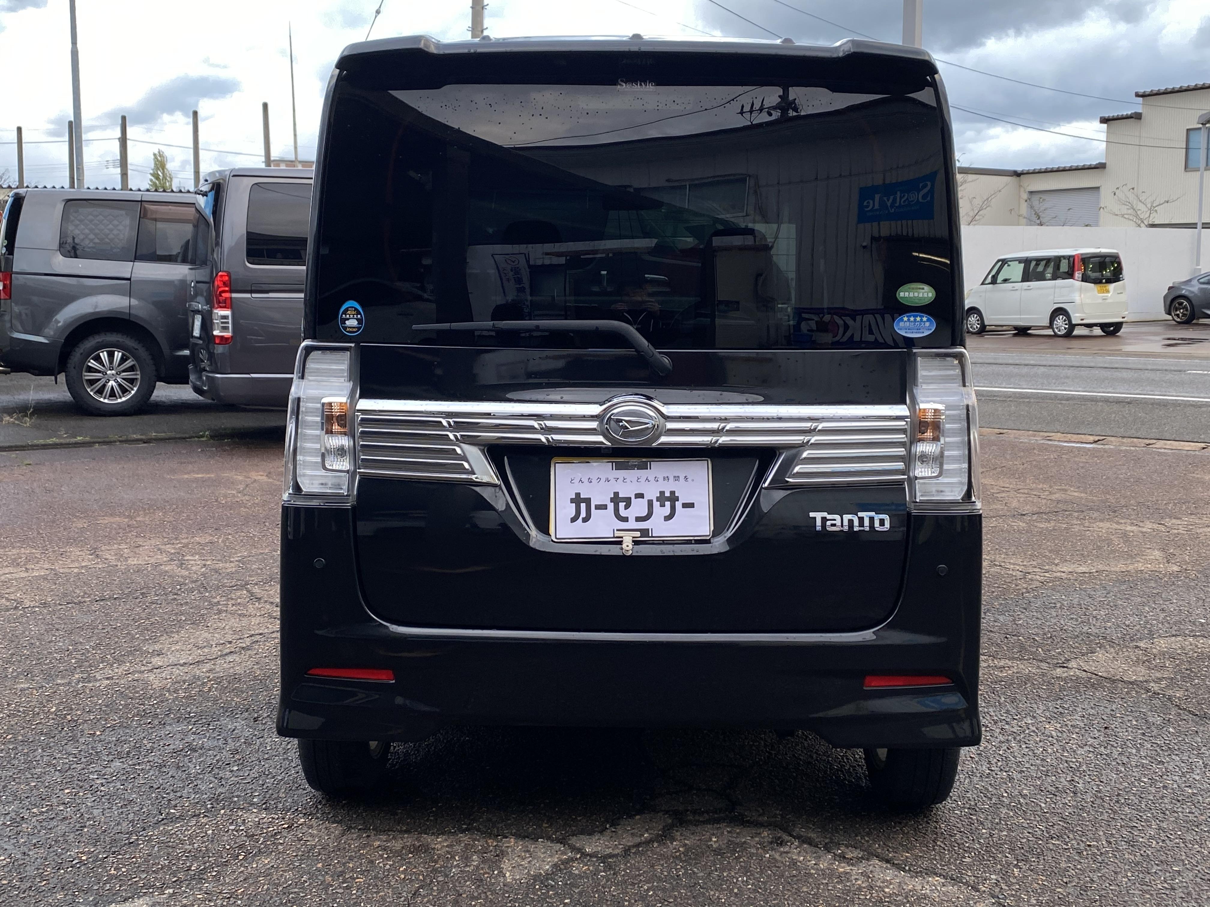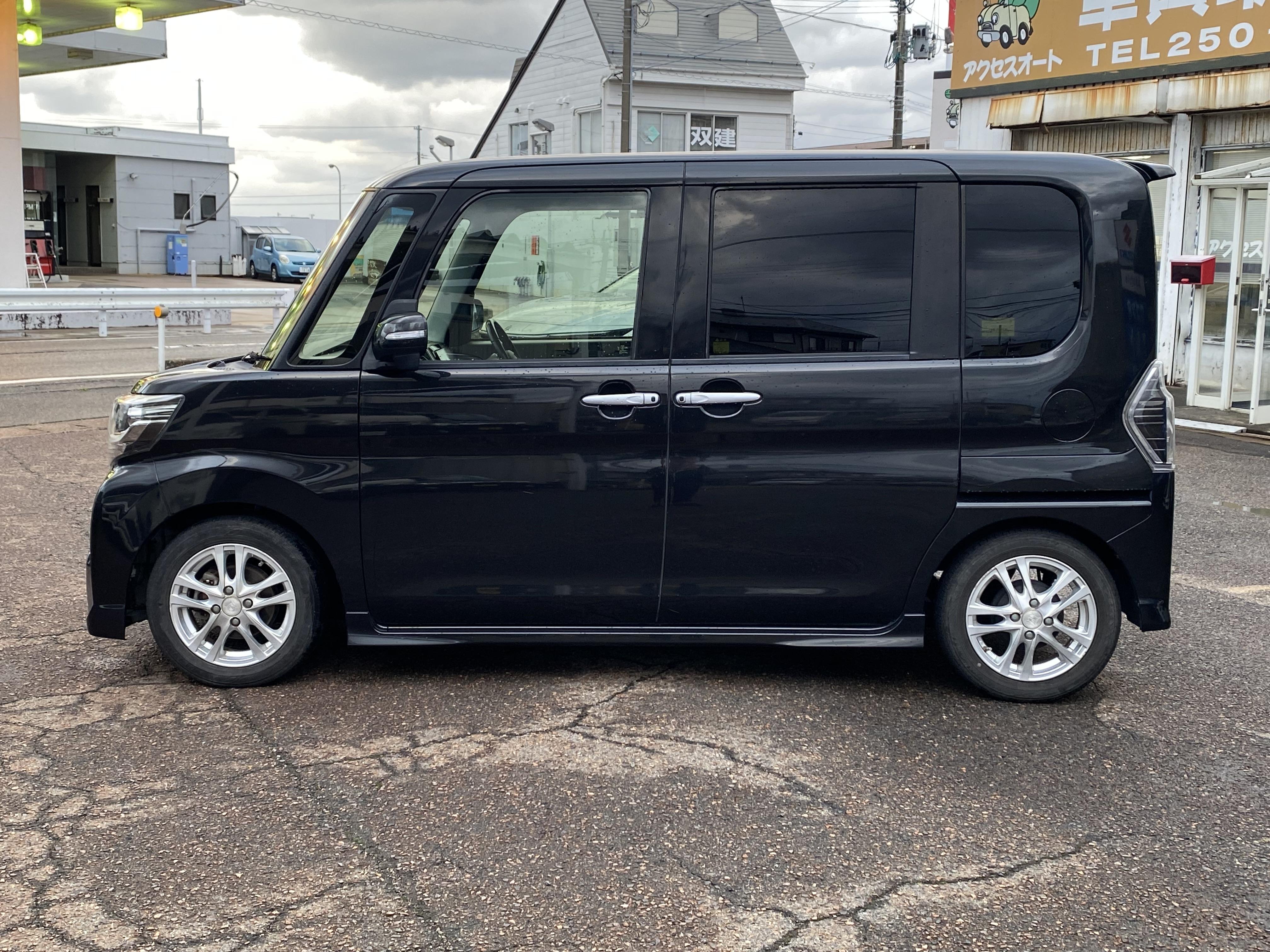 ダイハツ タントカスタム トップエディションSAⅡ 両側パワースライドドア、メモリーナビ、Bluetooth、バックカメラ、ETC、ハーフレザーシート、LEDヘッドライト、デイライト、ローダウン
