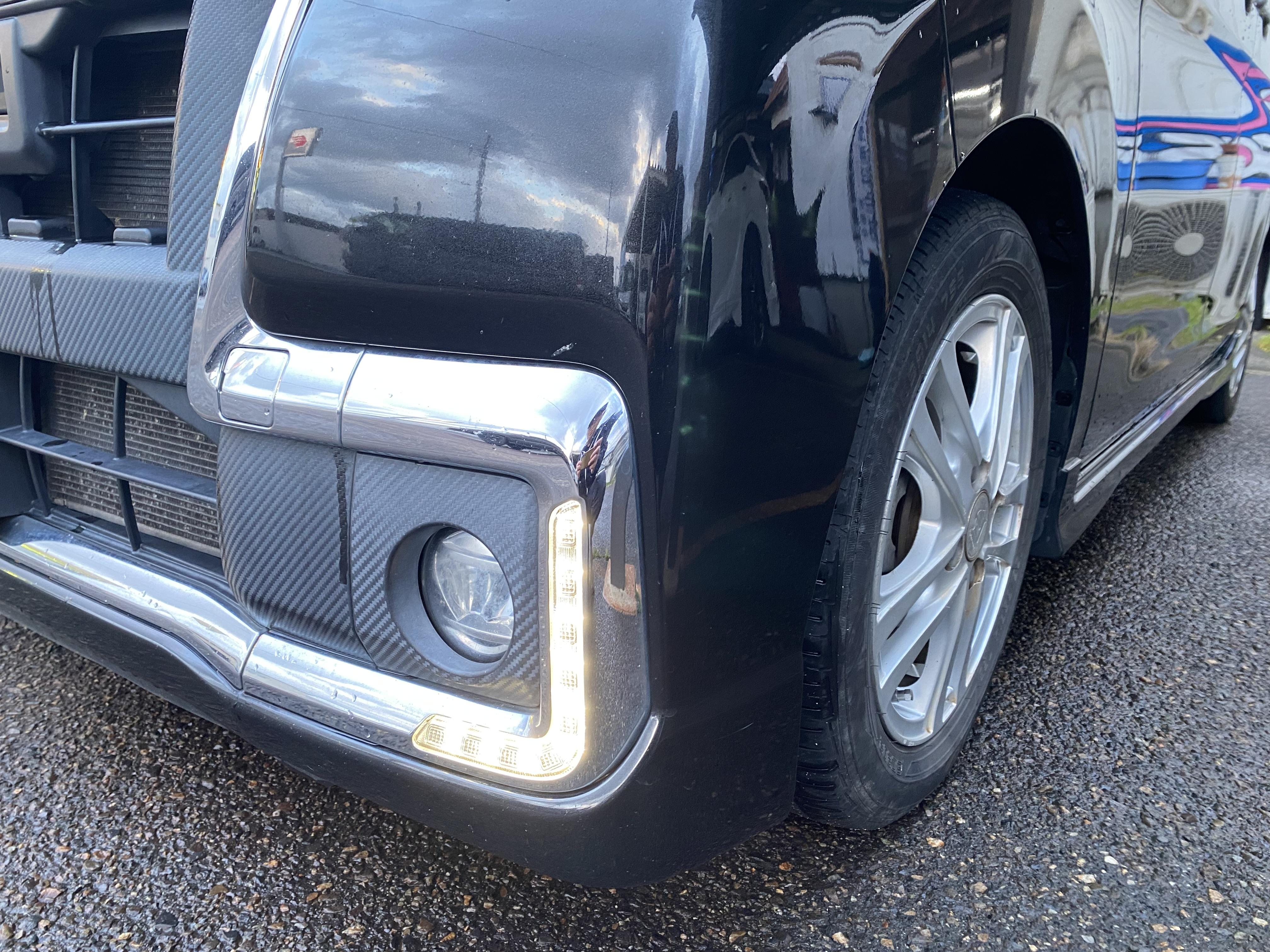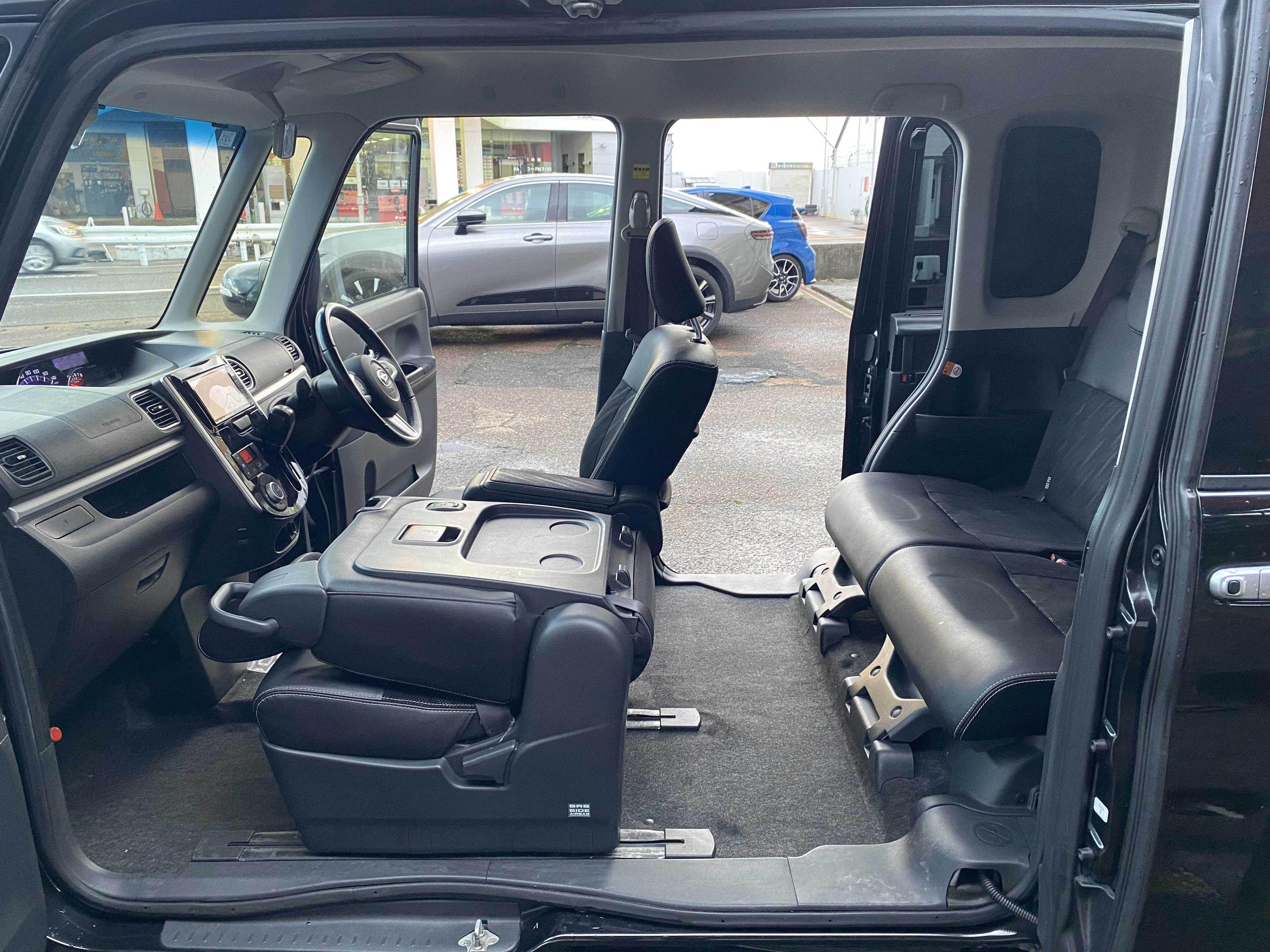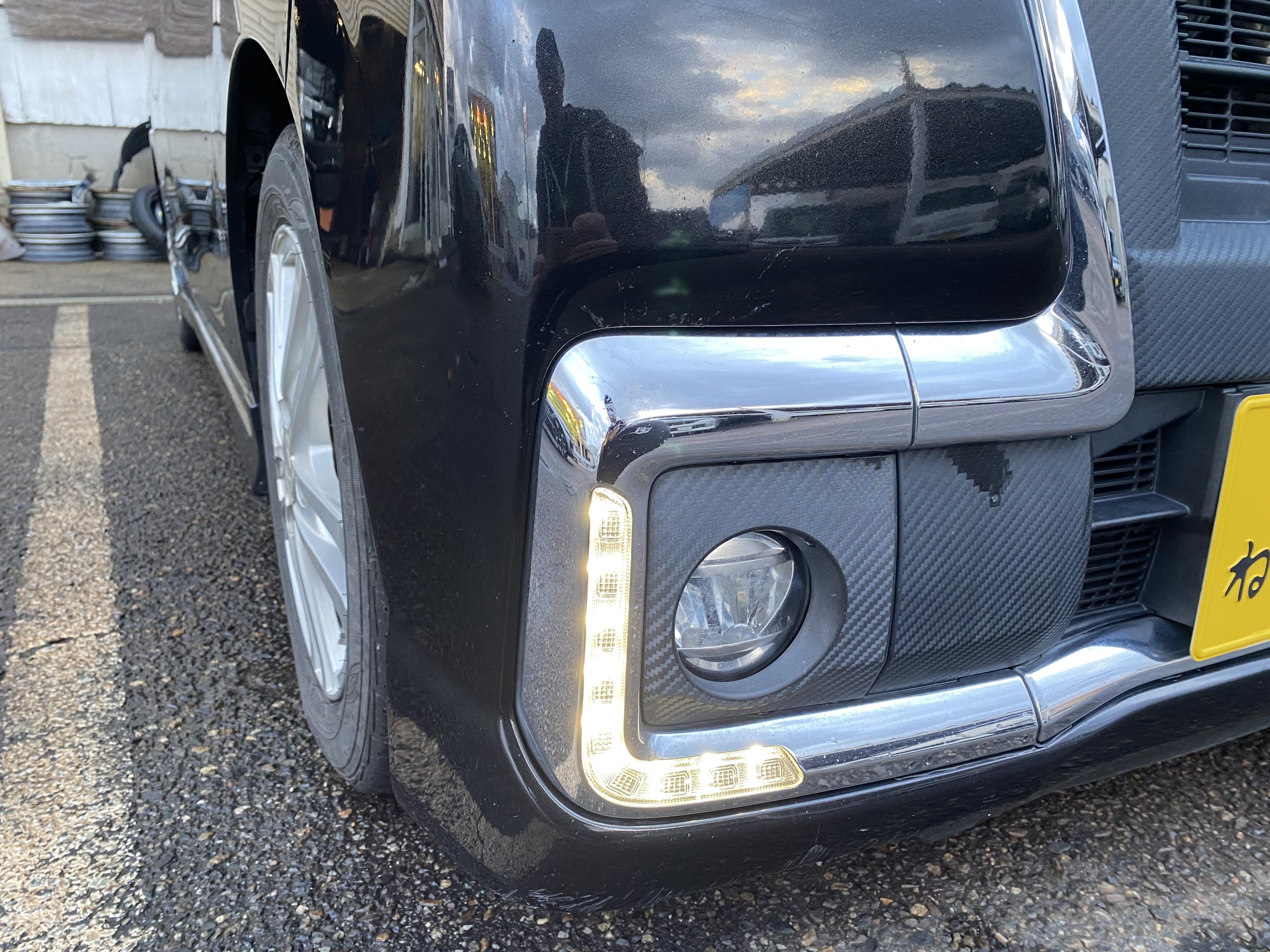 ダイハツ タントカスタム トップエディションSAⅡ 両側パワースライドドア、メモリーナビ、Bluetooth、バックカメラ、ETC、ハーフレザーシート、LEDヘッドライト、デイライト、ローダウン